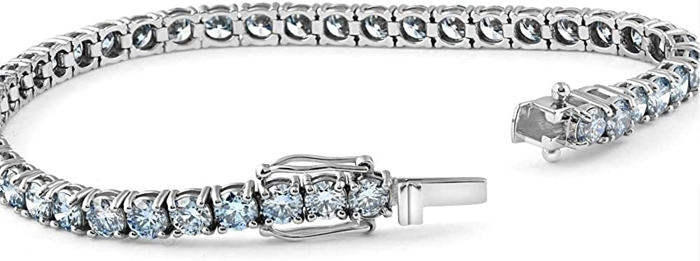 Certified 10 Carat Lab Grown Fancy Light Blue Diamond Tennis Bracelet Gold 17.78cm (VS)