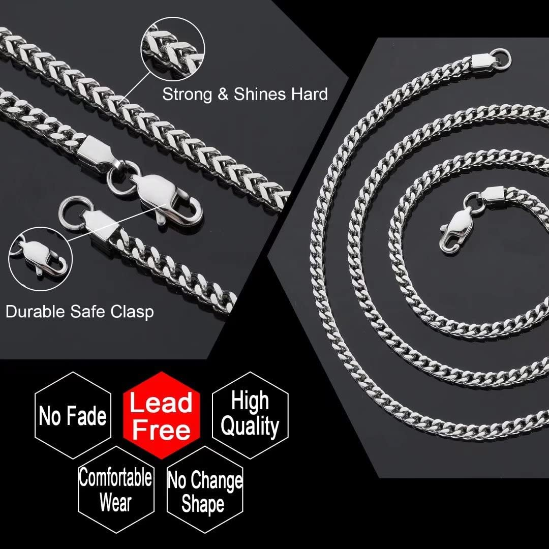 Cuban Chain Necklace Ladies Mens Cuban Chain 3MM 18/20/22/24" Long Hip Hop Jewelry with Gift Box