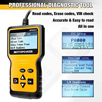 ✅【Multi-Functions】- Practical Multi-Functions OBD2 code reader features built-in OBD2 DTC lookup library, which help you to determine the cause of the engine light, read code, erase code, view freeze frame, I/M ready, vehicle information, data flow, real-time curve, get vehicle speed information, calculate load value, engine coolant temperature, get engine speed.
